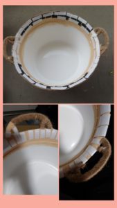 その桶を、麻紐でデコレーションしていこうと考えました。
