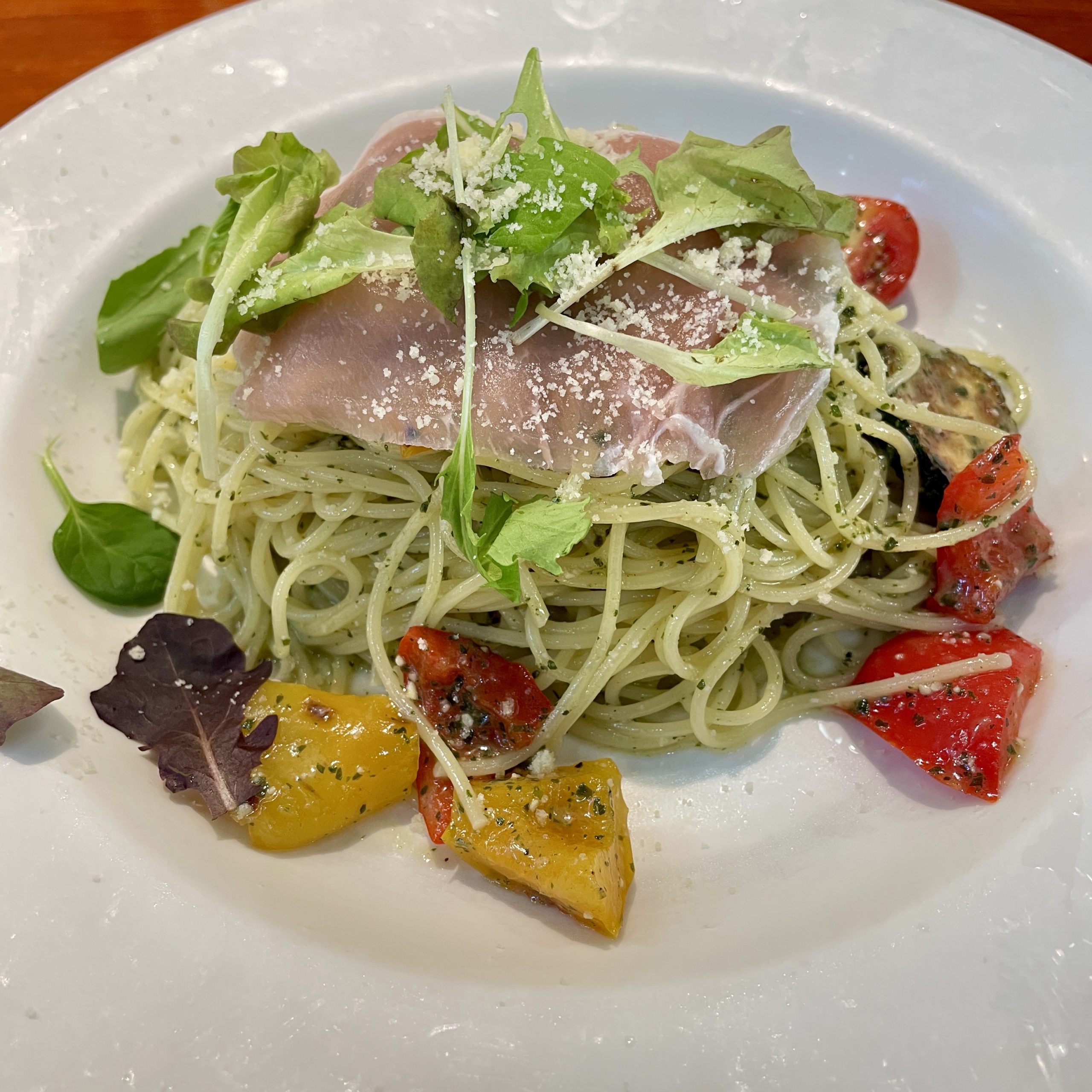 夏野菜(パプリカ、ミニトマト)や生ハムも載って、とってもボリューミーでした✨