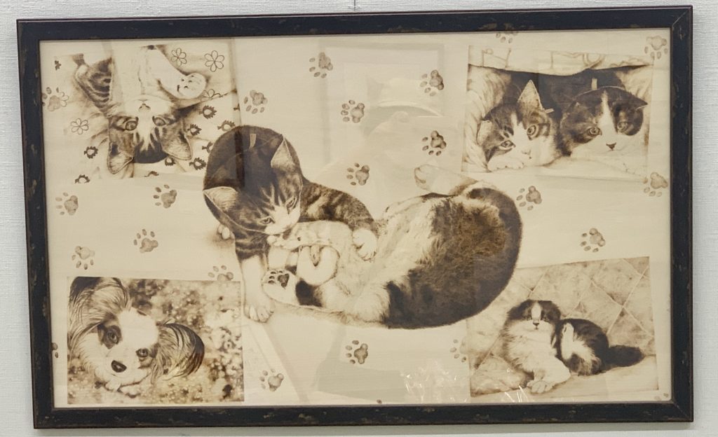 こちらは、「ウッドバーニング」という技法で描かれた絵です。