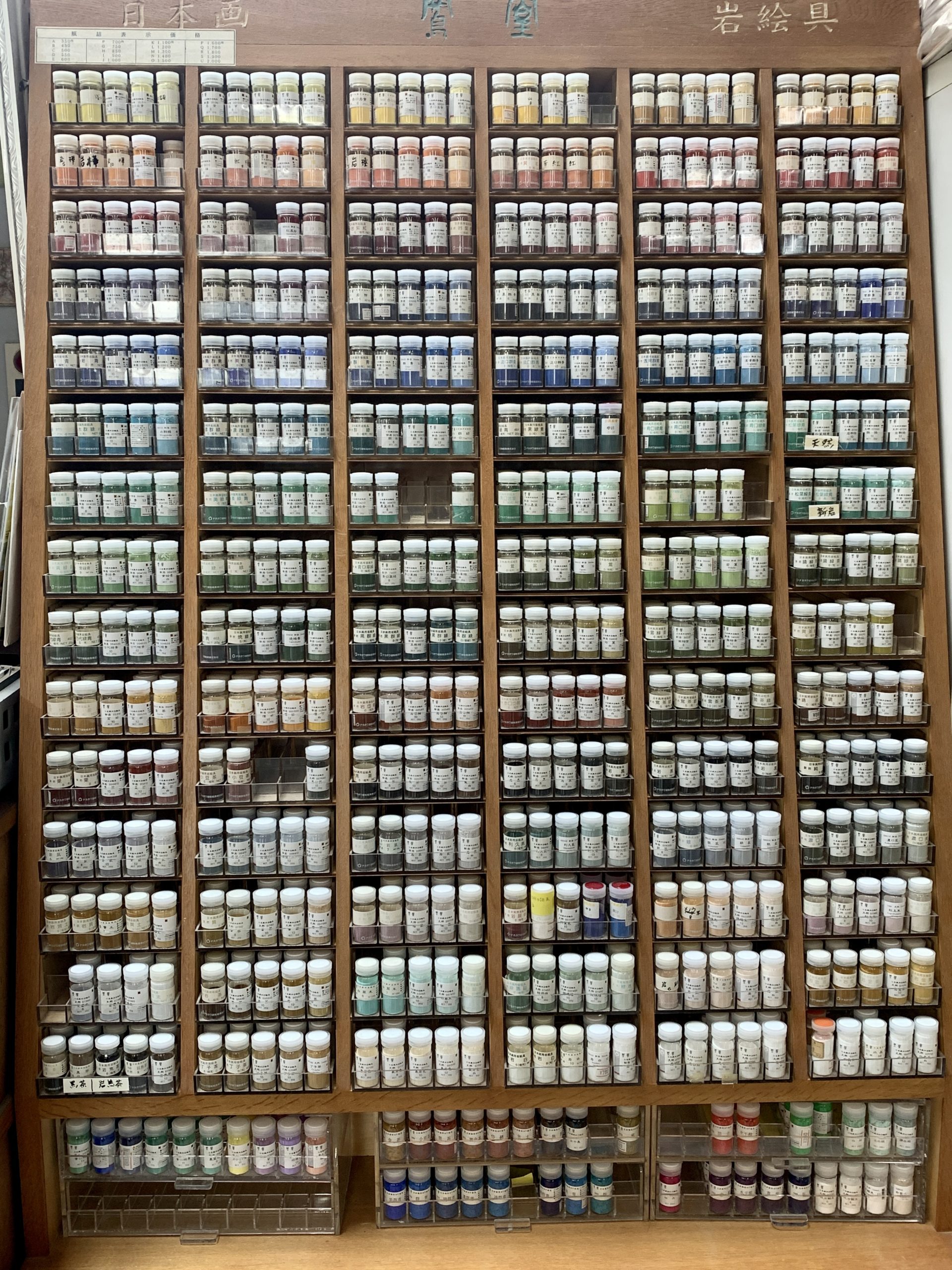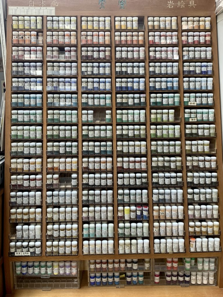 実は、これ、「岩絵具」という、日本画などで使われる画材が入った棚なんです。