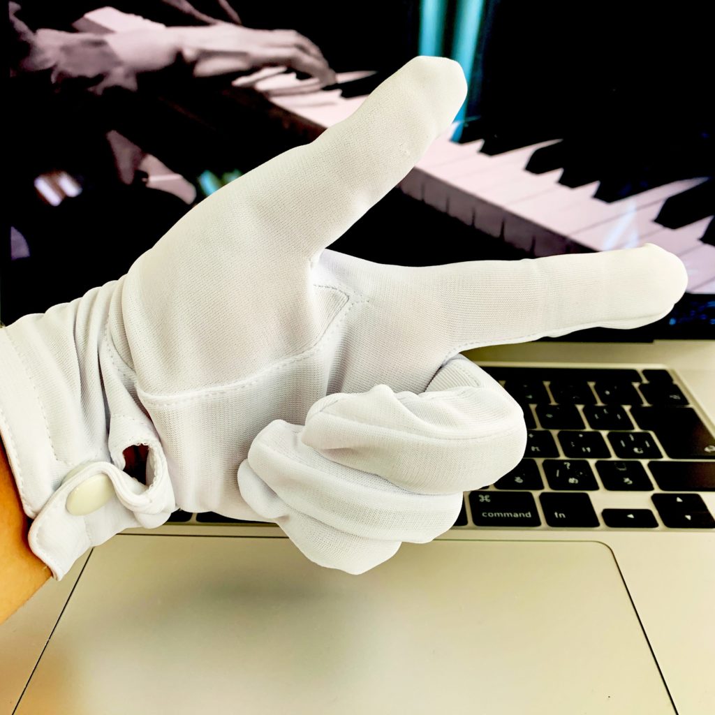 手首のところで、パチン!とボタンで止める方式の白手袋。