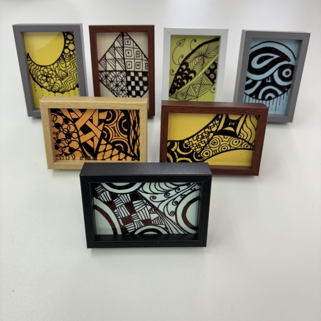 今日作ったのは、写真の小さなフレームに幾何学模様をデザインしたものです。