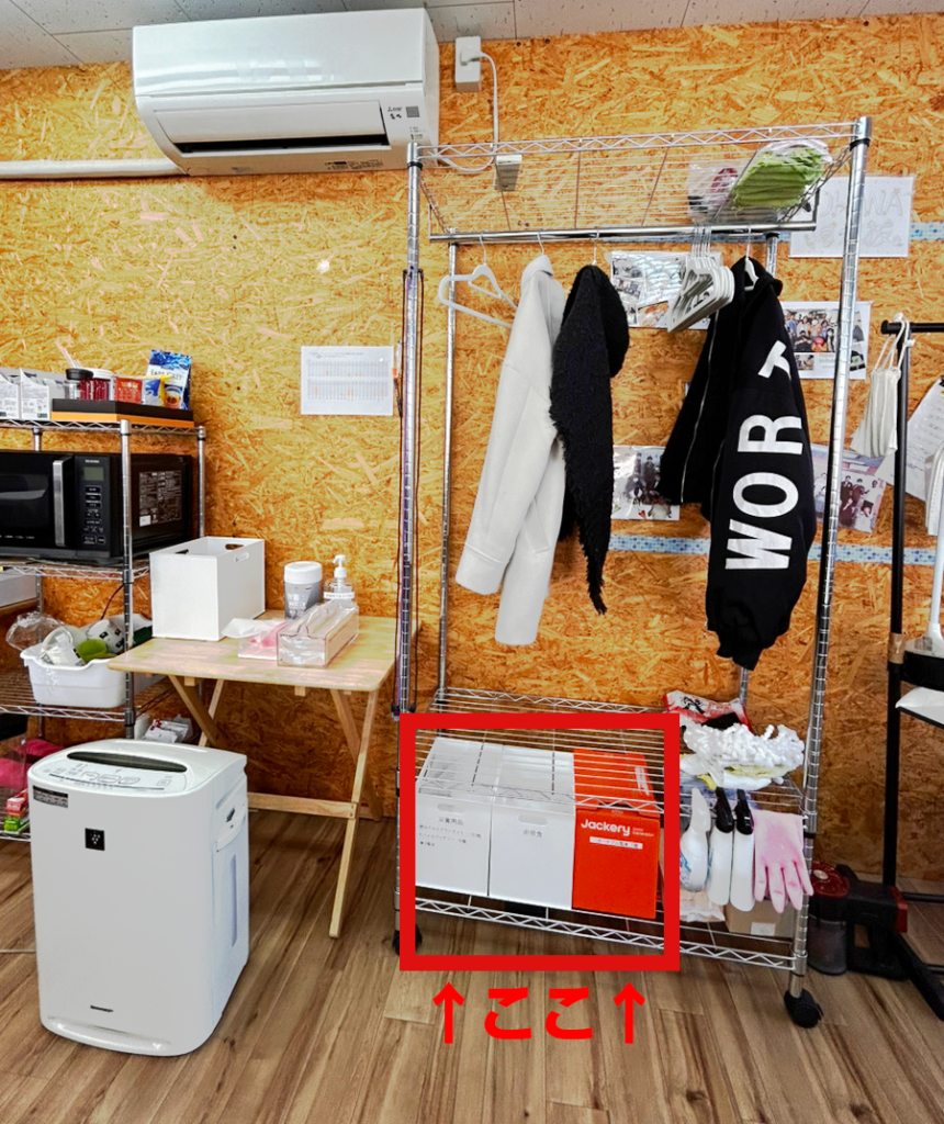 左から、災害用品、非常食、そして、ポータブル電源です(`・ω・´)✨